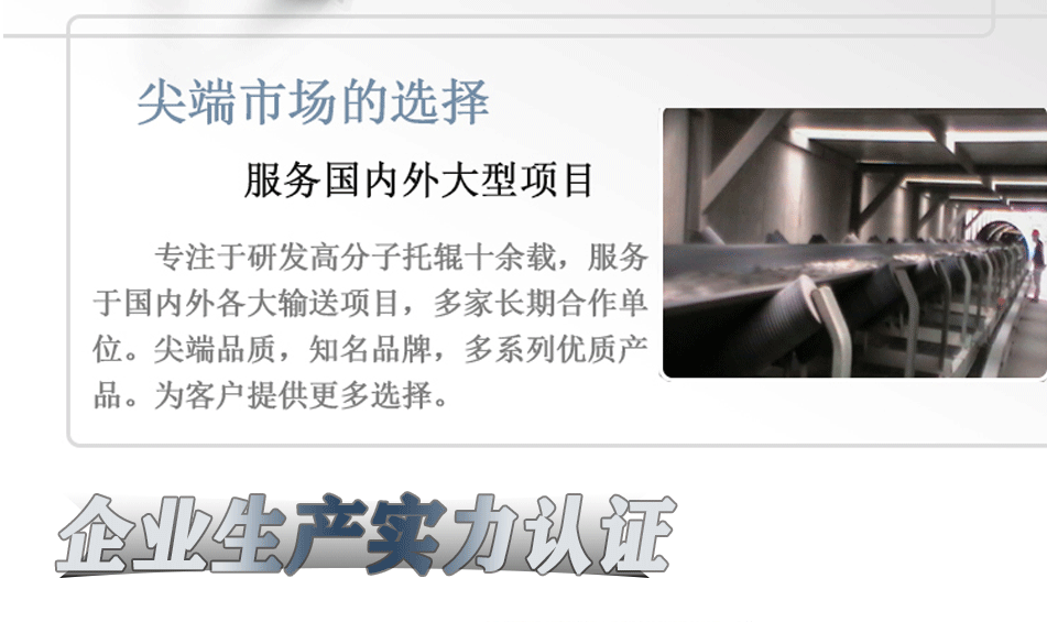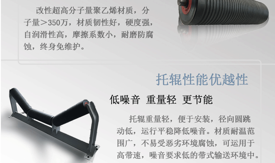 使用FJS-JY低噪音托輥可減少能源消耗、延長皮帶壽命,降低運行成本,可靠性強、減少非計劃停機。